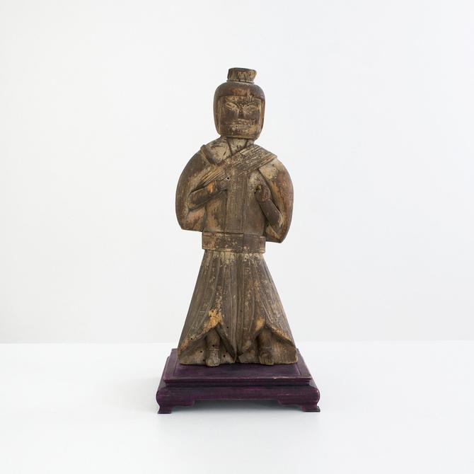 18th Century Asian Guardian Statue Antique Asian Guardian Wood