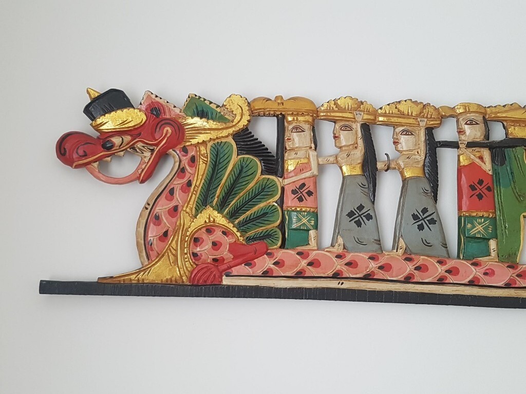 Balinese Dragon Boat Panel Wall Art Wood Carving Indonesian Art