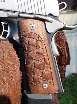 Basket Weave Pattern Carved Into Walnut Pistol Grips For 1911