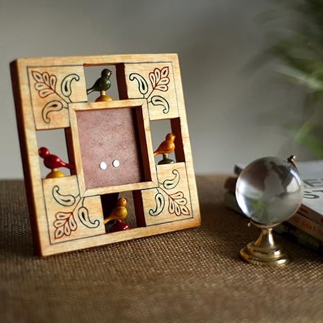 Buy Exclusivelane Parrot Photo Frame With Hand Carving In Wood