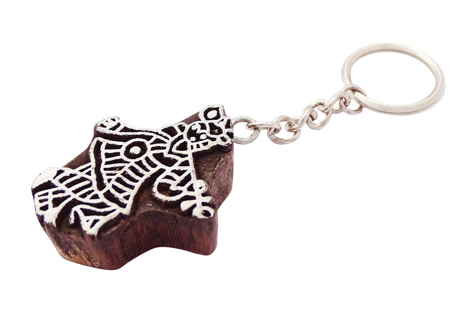 Buy Peegli Key Chain Stamp Hand Carved Saree Border Brown Henna