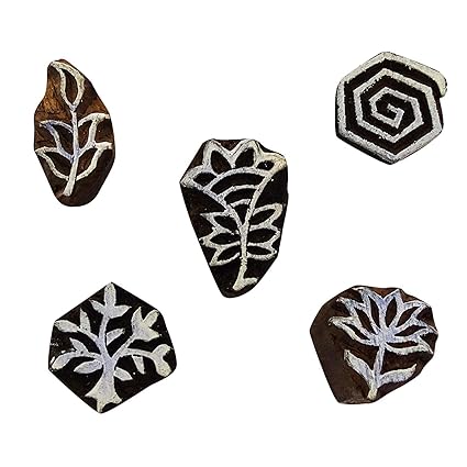 Buy Peegli Floral Wooden Block Brown Textile Printing Stamp Tattoo