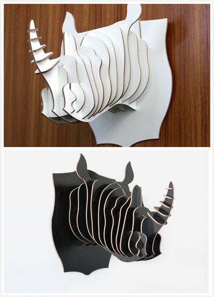 Yjbetter Diy 3d Wooden Puzzle Animal Rhino Head Wall Hanging Home