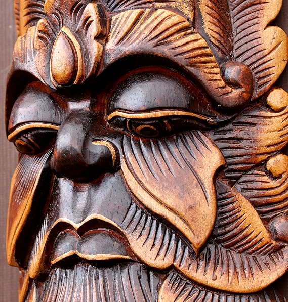 Bali Tribal Green Man Wood Leaf Mythological Mask Wall Decor 20 X