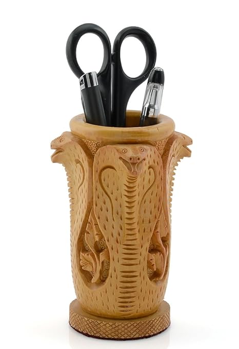 Buy Indian Designs Wood Hand Carved Carved Dark Cream Pen Holder