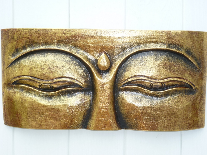 Handmade Gold Wooden Eyes Of Buddha Wall Plaque M
