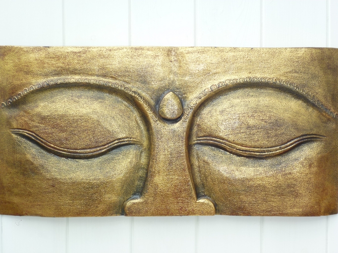 Wise Eyes Of Buddha Wall Art Panel Hand Carved Wood