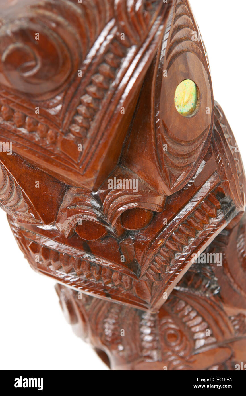 Maori Design Carving In Wood With Paua Shell Eyes Stock Image
