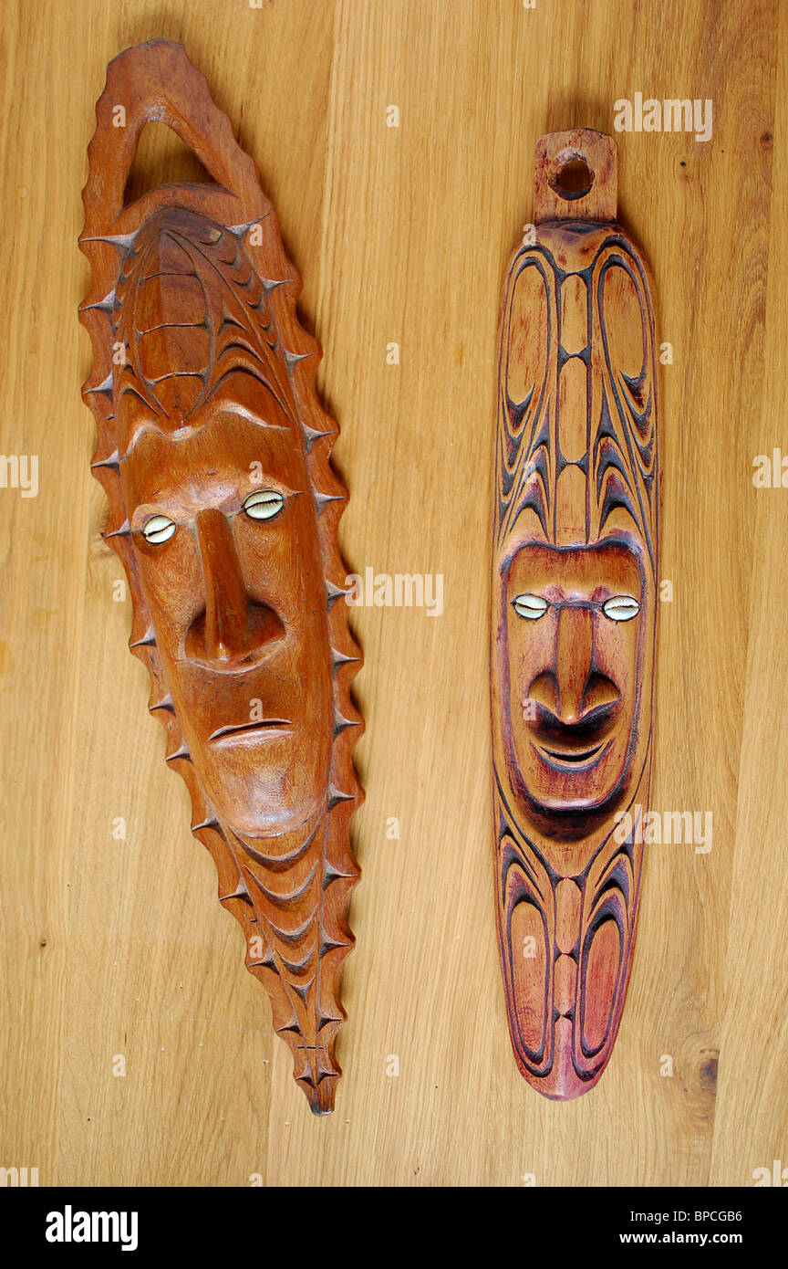 Carved Wooden Masks With Sea Shell Eyes Stock Photo 31009082 Alamy