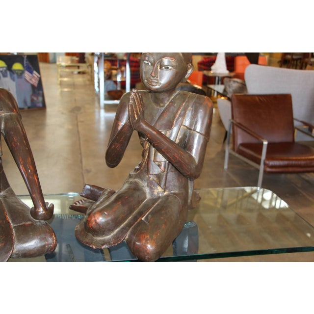 Early 19th Century Siamese Thai Wood Carved Monks With White