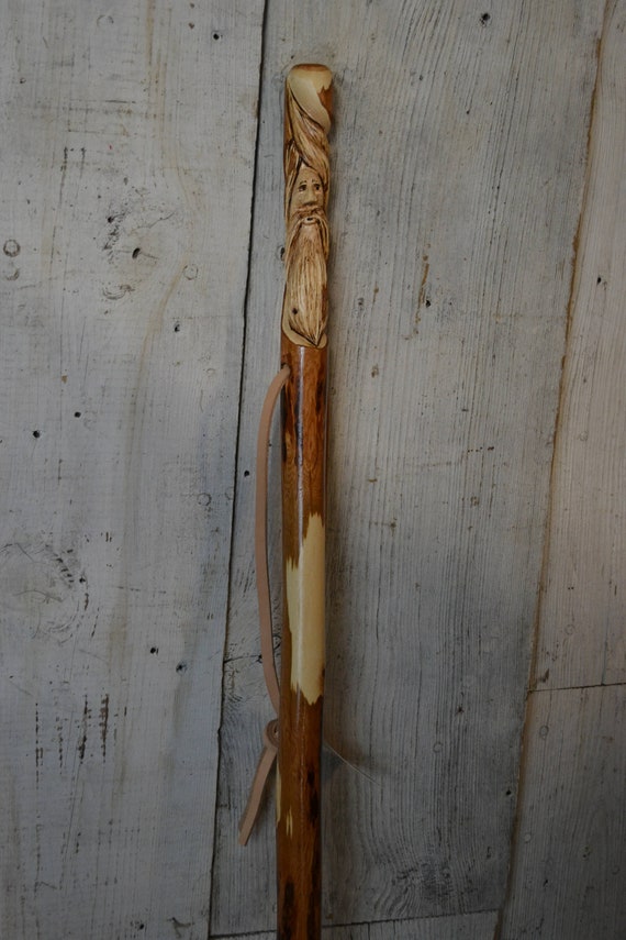 Wood Spirit Walking Stick Hickory Hiking Staff With Woodspirit