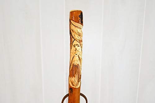 Amazon Com Walking Stick With Wood Spirit Carving On 72 Hickory