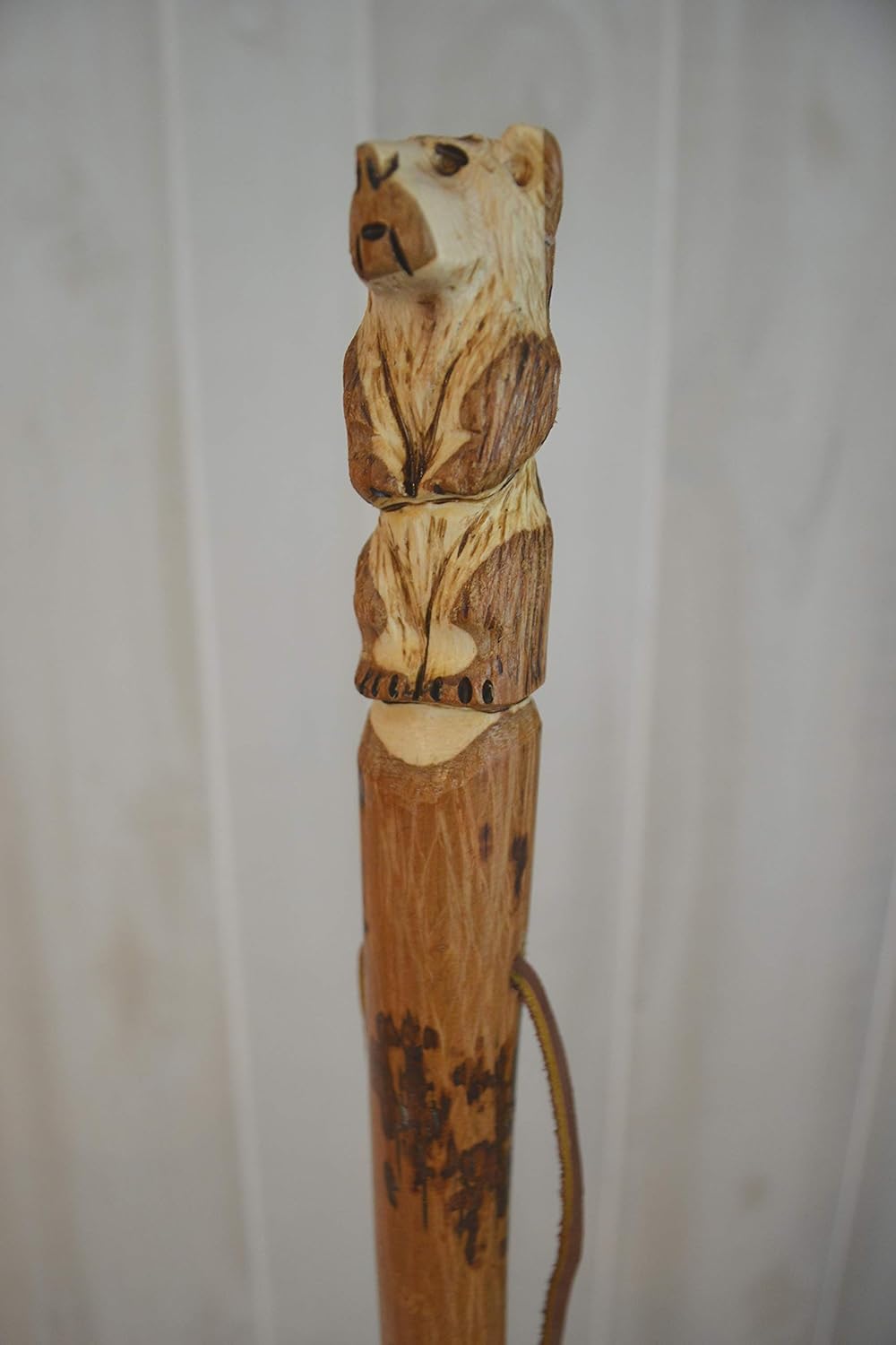 Bear Carved Hickory Walking Stick Hand Carved Staff Made In The