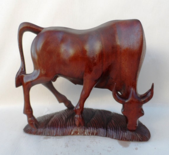 Bull Wooden Sculpture L11x H7x W4 Dark Grey Etsy