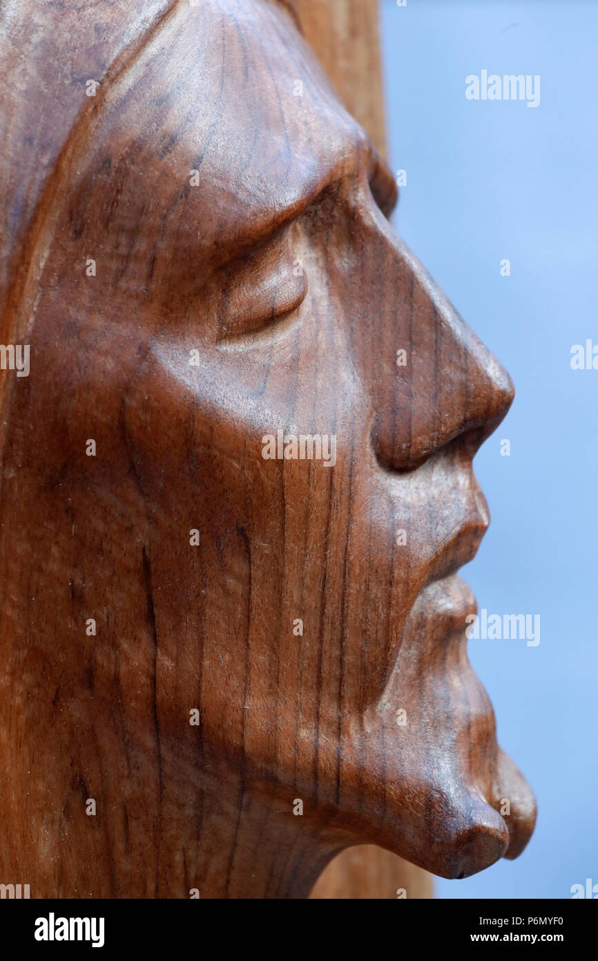 Sculpture With Image Of Jesus Christ Carved In Wood Between Clear