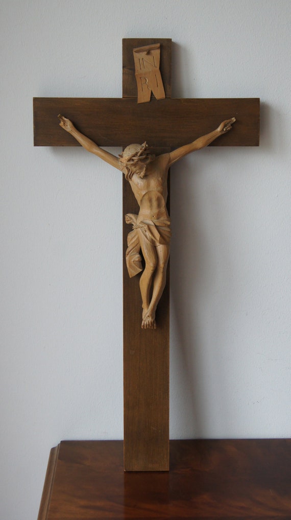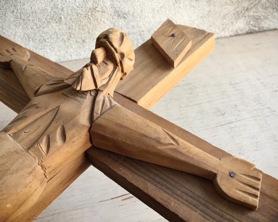 Huge Jesus Vintage Wood Carving Cross Crucifixion Jesus Christ Etsy