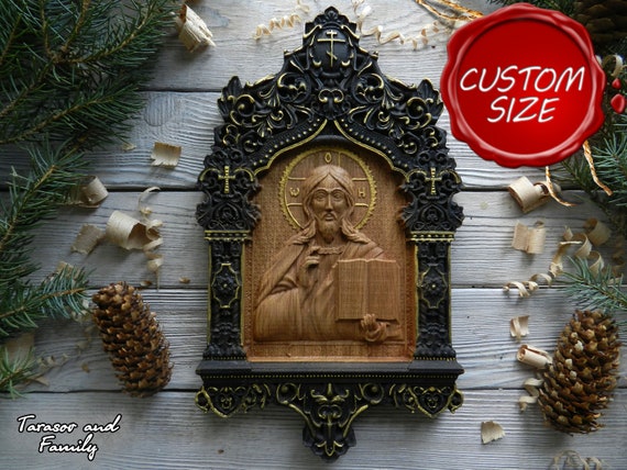Jesus Wall Home Decor Icon Wood Carving Wooden Carved Etsy