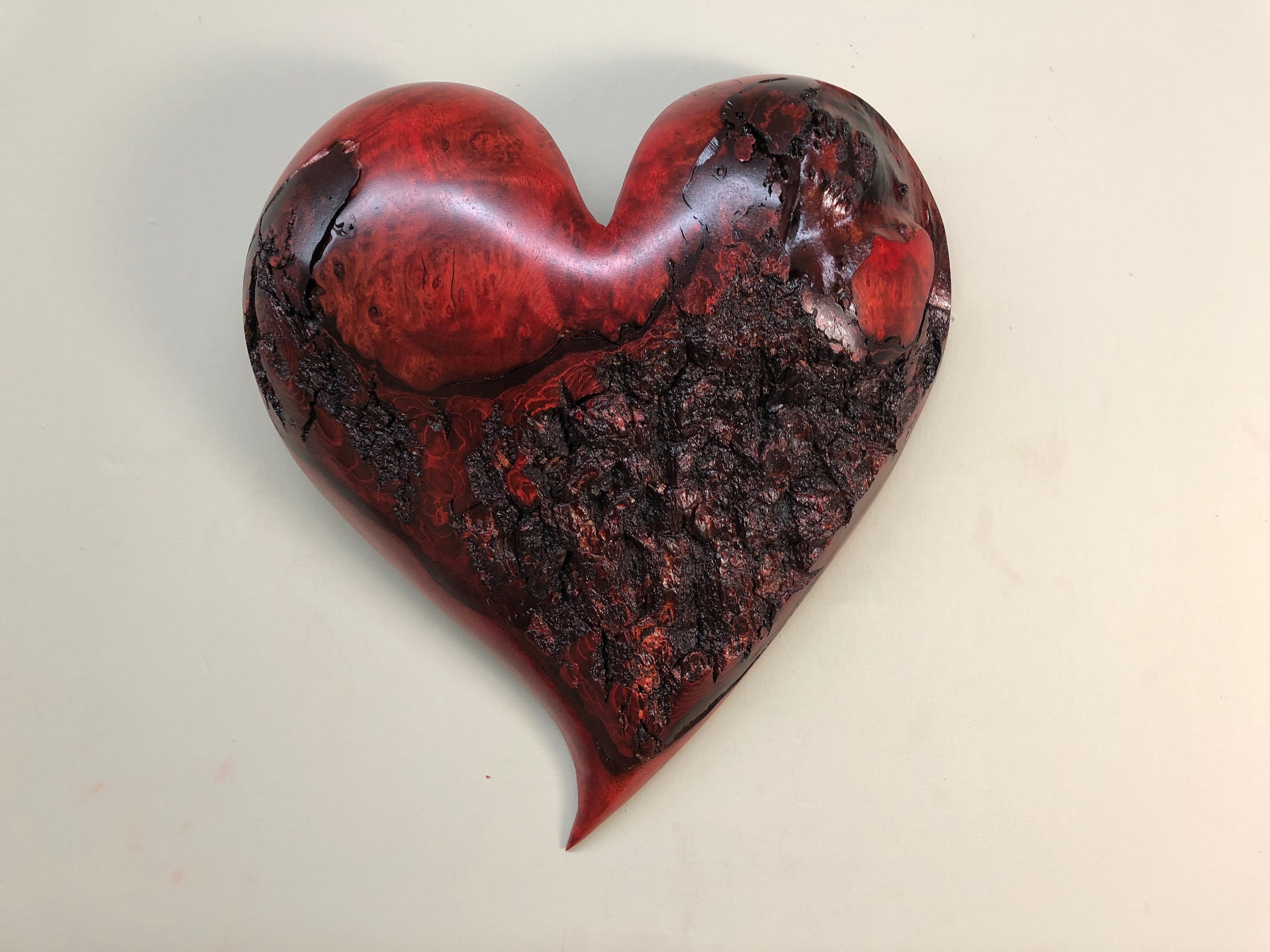 Hand Carved Wood Heart Red Velvet Heart