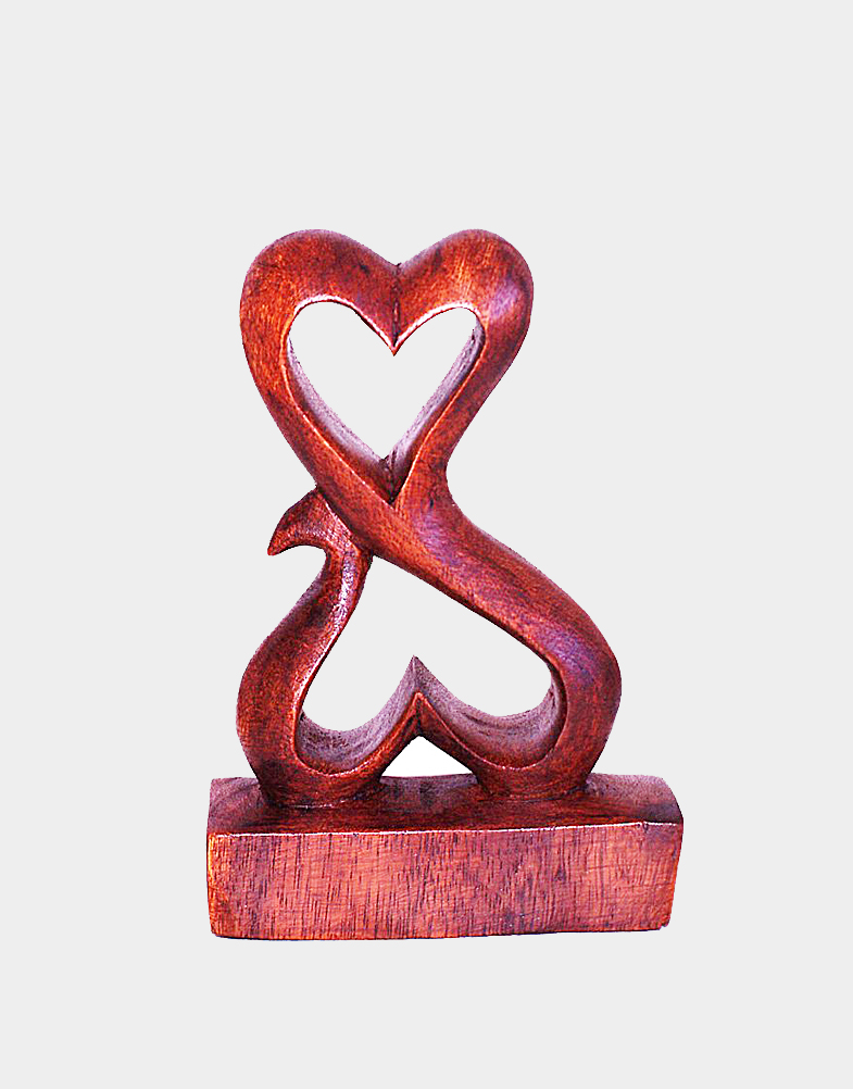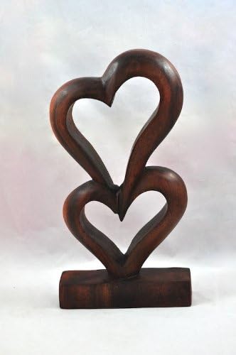 Thai Gifts Wooden Heart Carving Entwined Double Celtic Hearts