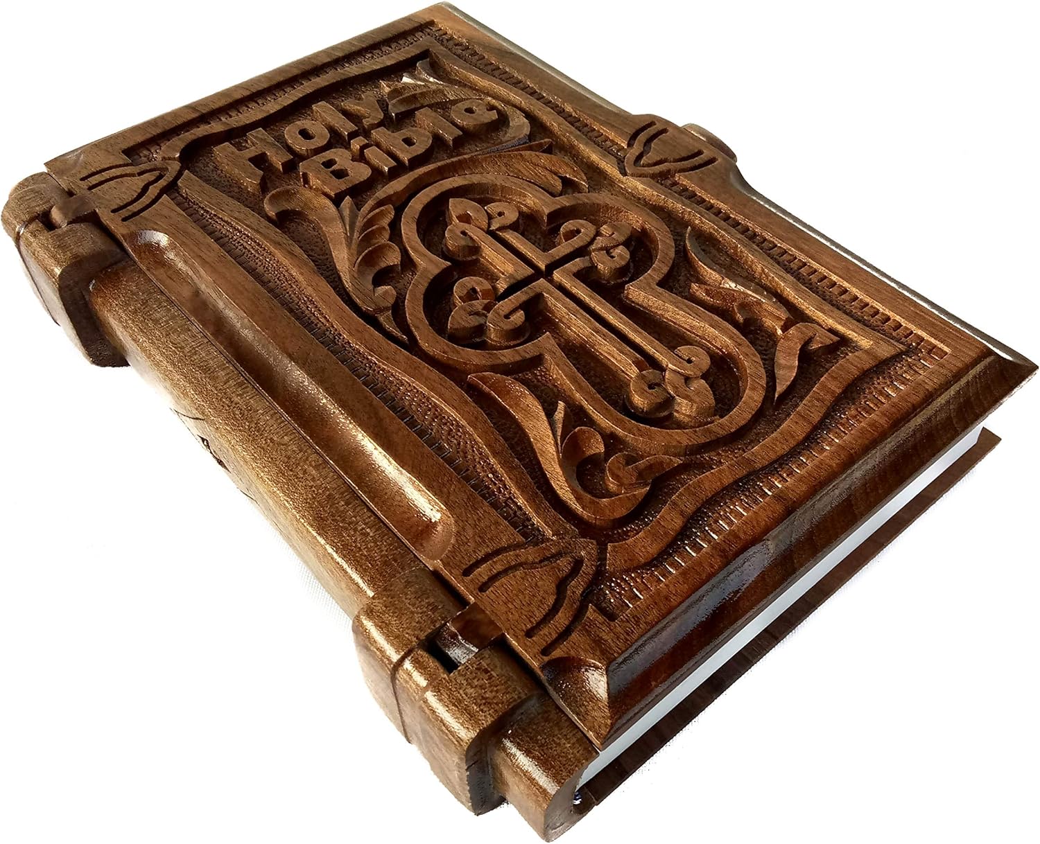 Amazon Com Hand Carved Walnut Wood Holy Bible English Easy To