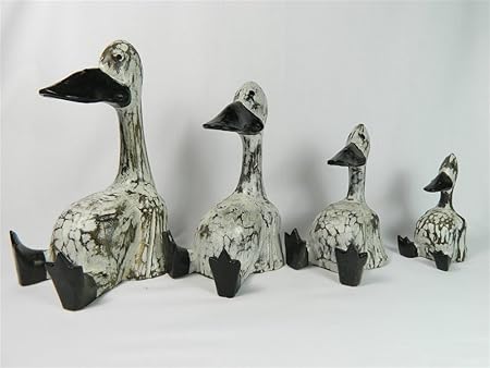Thai Gifts Wooden Duck Carving Shabby Chic Ducks Set Of 4