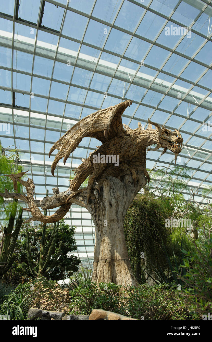 Wooden Sculpture Carving Of Large Winged Dragon In Gardens By The
