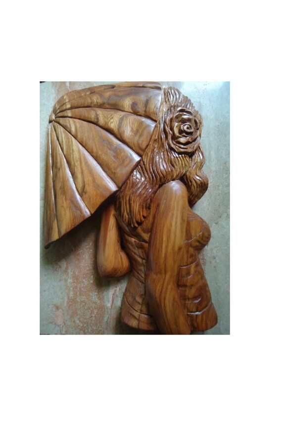 Large Wood Sculpture Girl With Umbrella Large Wood Wall Art Etsy