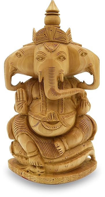 Buy Ganesh Statue Murti With 3 Faces Hand Carved In Wood