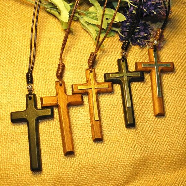 Wholesale Carving Wood Cross Pendant Necklaces Alloy Double