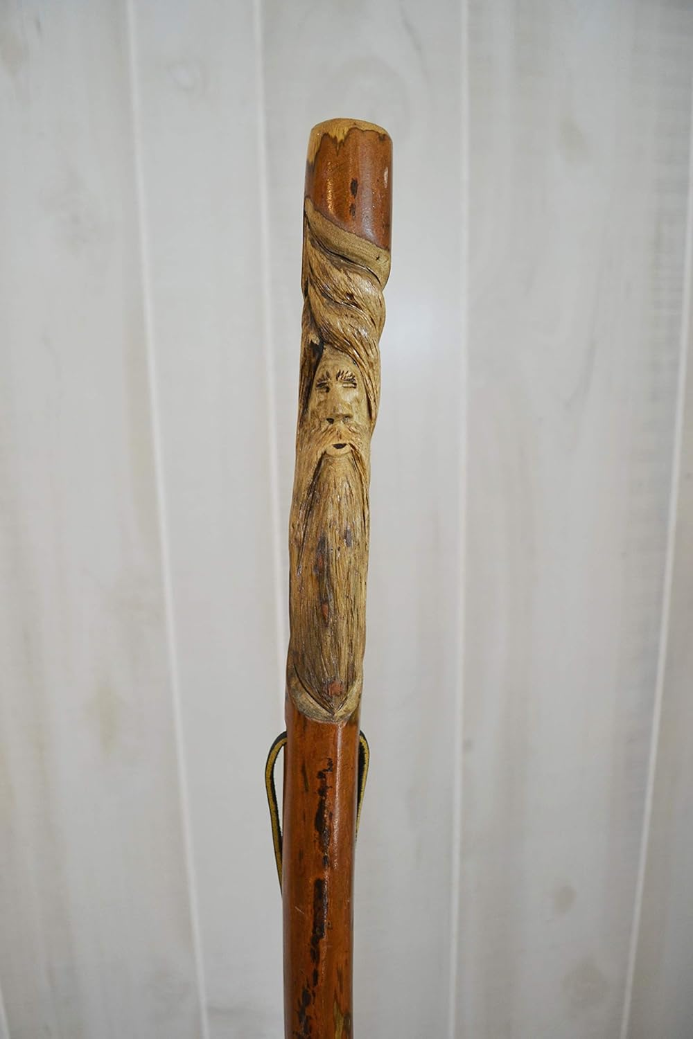 Amazon Com Walking Stick With Wood Spirit Carving On 72 Hickory