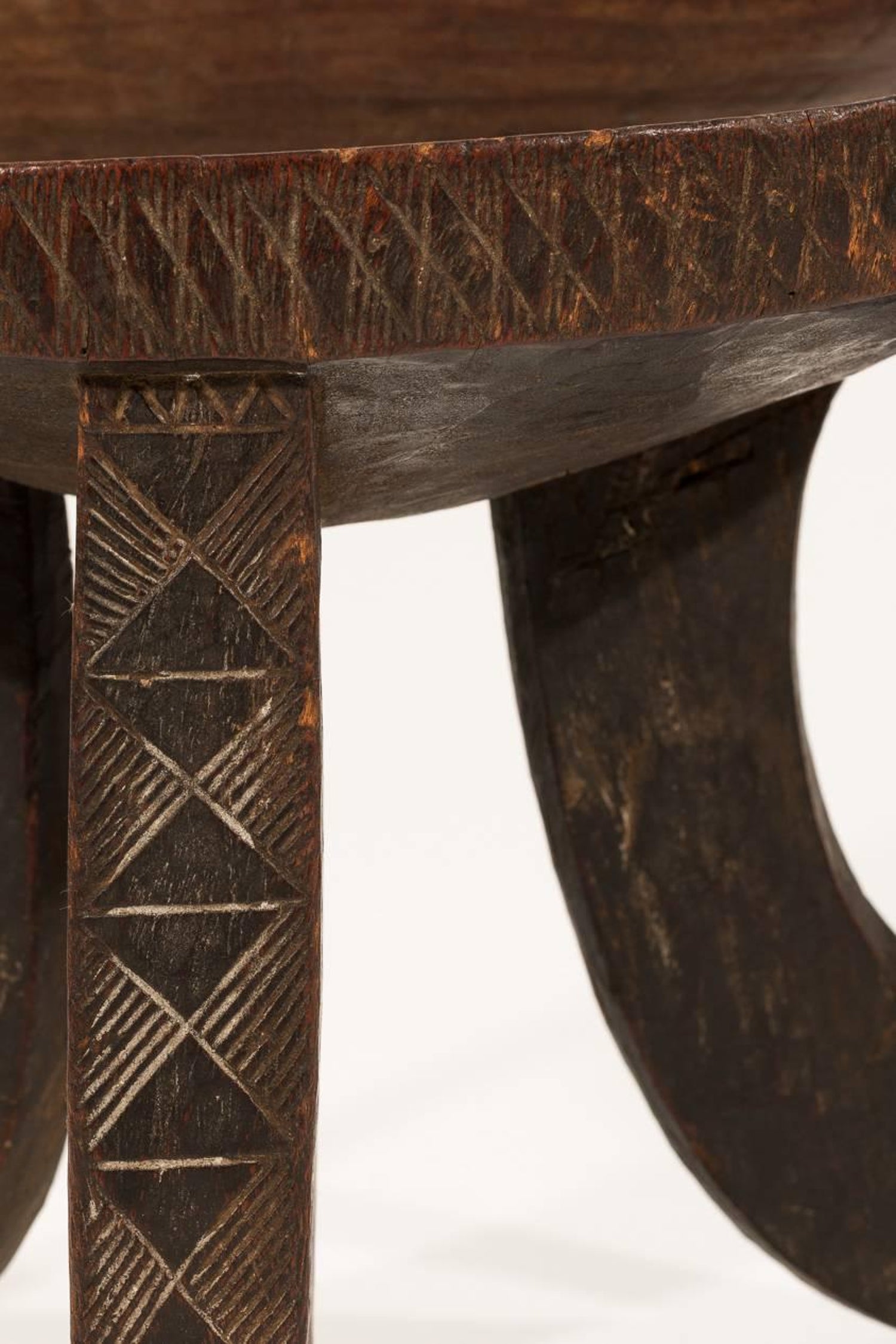 Colonial Era Ethiopian Stool With Decorative African Carving At