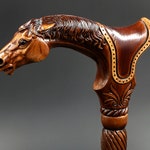 Designer Art Wooden Cane Walking Stick Horse Animal Wood Carved