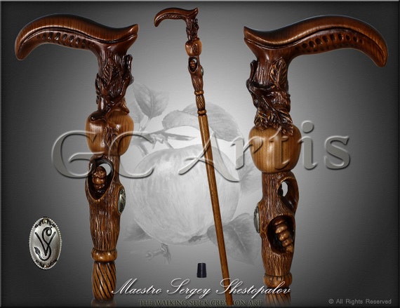 Unique Design Wood Carved Walking Stick Cane Paradise Apple Etsy
