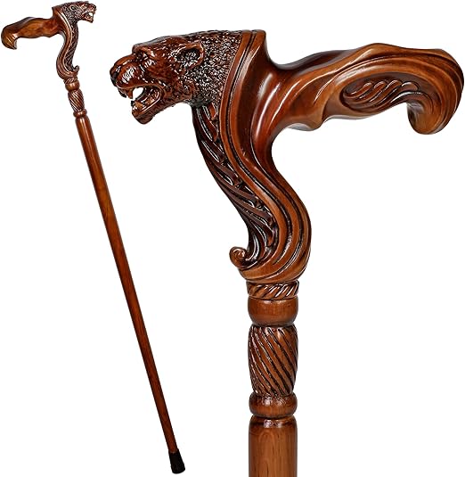 Amazon Com Walking Cane Lion Design Carved Walking Stick Handmade