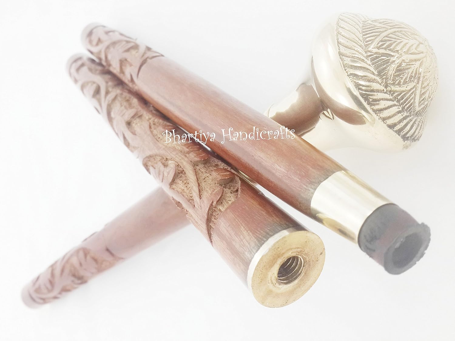 Wooden Walking Stick Beautiful Brass Carved Handle And Carved