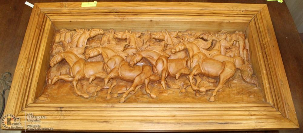 Carved Wood Plaque Home Decor Wood Carving Herd Of Horses