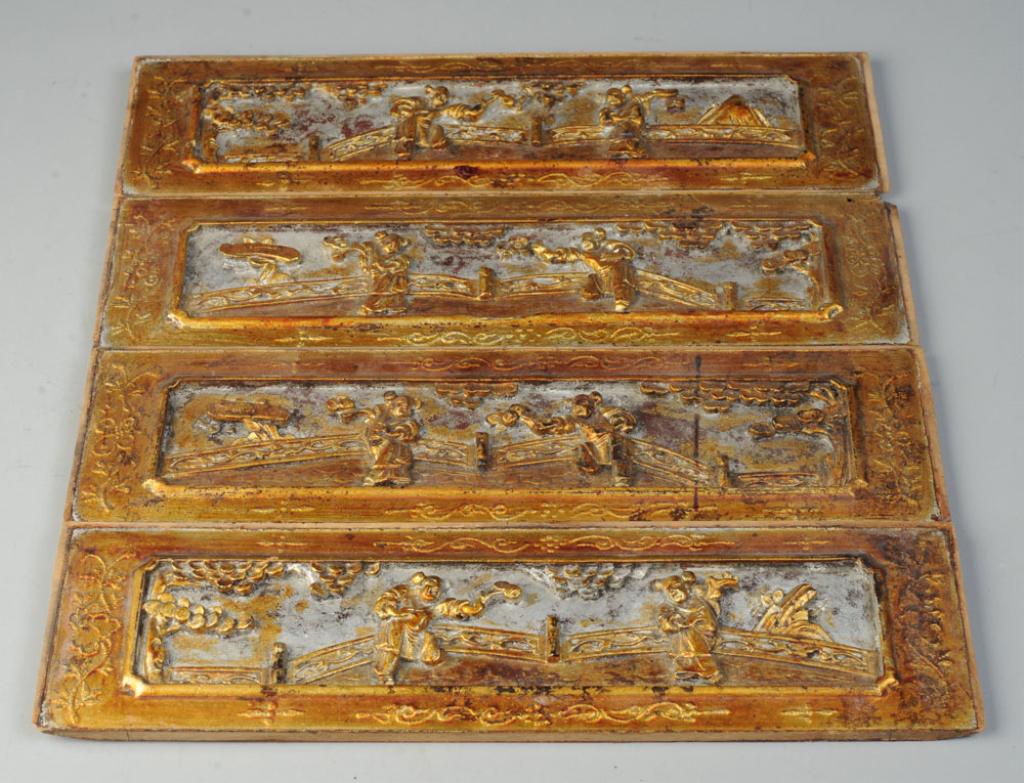 Four Chinese Relief Carved Gilt Wood Panels Aug 31 2019