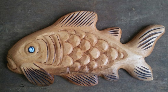 Hand Carved Wood Fish Wood Carved Fish Artist Signed Fish Etsy