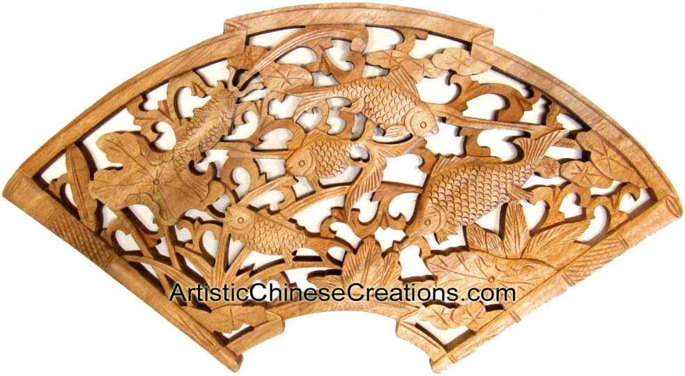 Oriental Wood Carving Of Koi Fish 16 X8 Oriental Furnishings