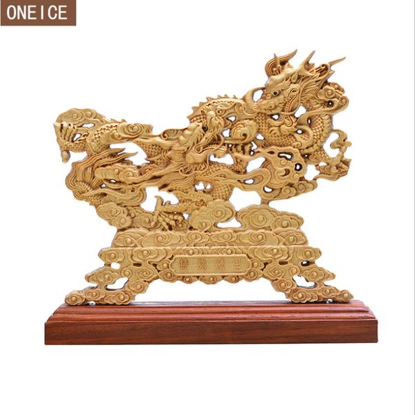 Chinese Dragon Statue Solid Wood Handmade Wood Carving Home