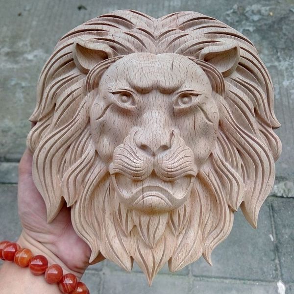 Woodcarving Crafts King Lion Wooden Carved Animal Home Ornaments